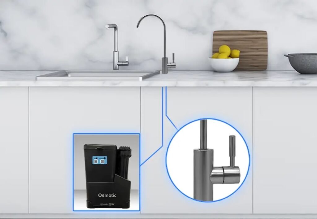 Estes sistemas são instalados de forma discreta e integrados na rotina doméstica, permitindo ter água pura a partir de uma torneira exclusiva — sem ocupar espaço e sem comprometer o estilo da cozinha.